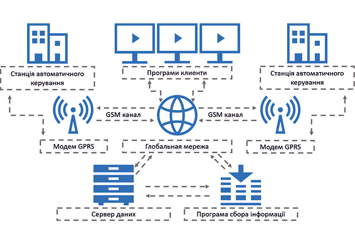 Система диспетчеризації забезпечує контроль поточних параметрів обладнання в реальному часі.
