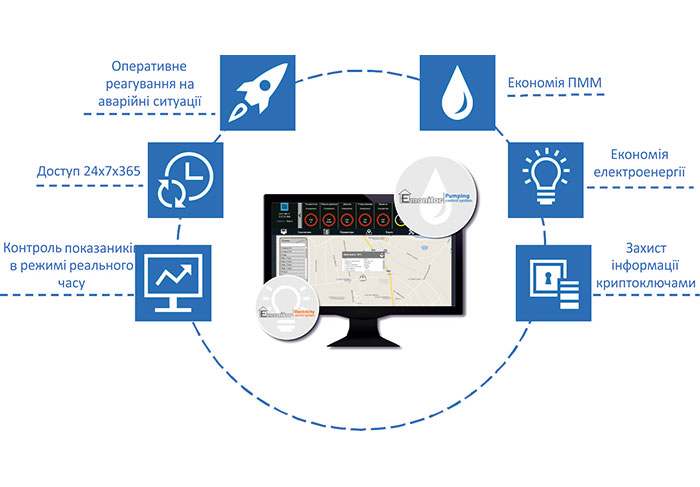 - Система диспетчеризації може дати економію електроенергії за рахунок вчасного реагування на ситуацію і за рахунок правильного регулювання параметрів обладнання в цілому. За оцінками фахівців ця економія може становити 3-5% по електроенергії і 1-3% по воді.